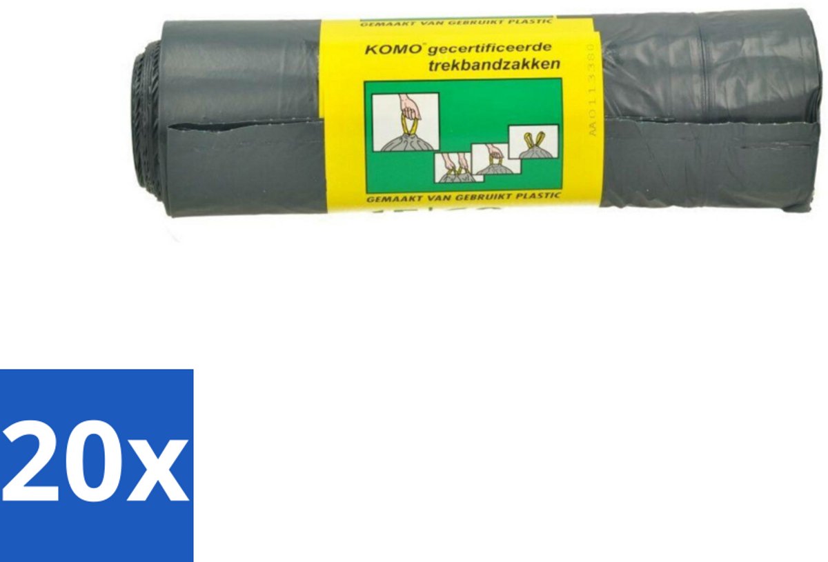 20 x Komo Vuilniszakken Trekband 60L 15 stuks per verpakking