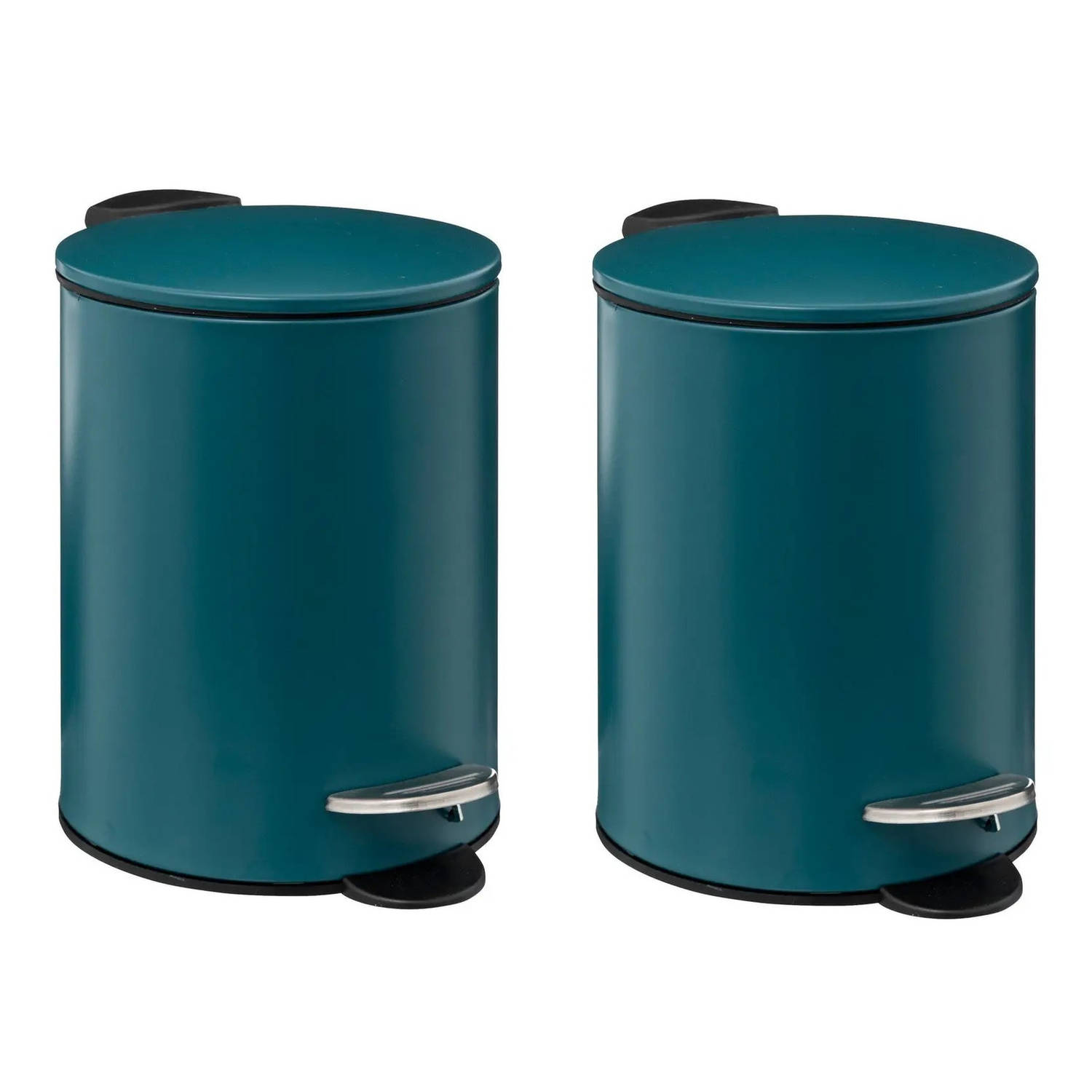 5Five kleine pedaalemmer - 2x - metaal - blauw - 3L - 16 x 25 cm - Badkamer/toilet - Pedaalemmers