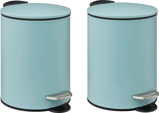 5Five kleine pedaalemmer - 2x - metaal - ijsblauw - 3L - 16 x 25 cm - Badkamer/toilet - Pedaalemmers