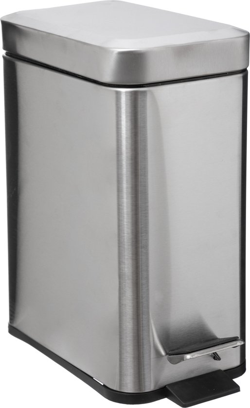 Prullenbak/pedaalemmer zilver metaal 5 liter 14 x 29 x 30 cm - Pedaalemmers