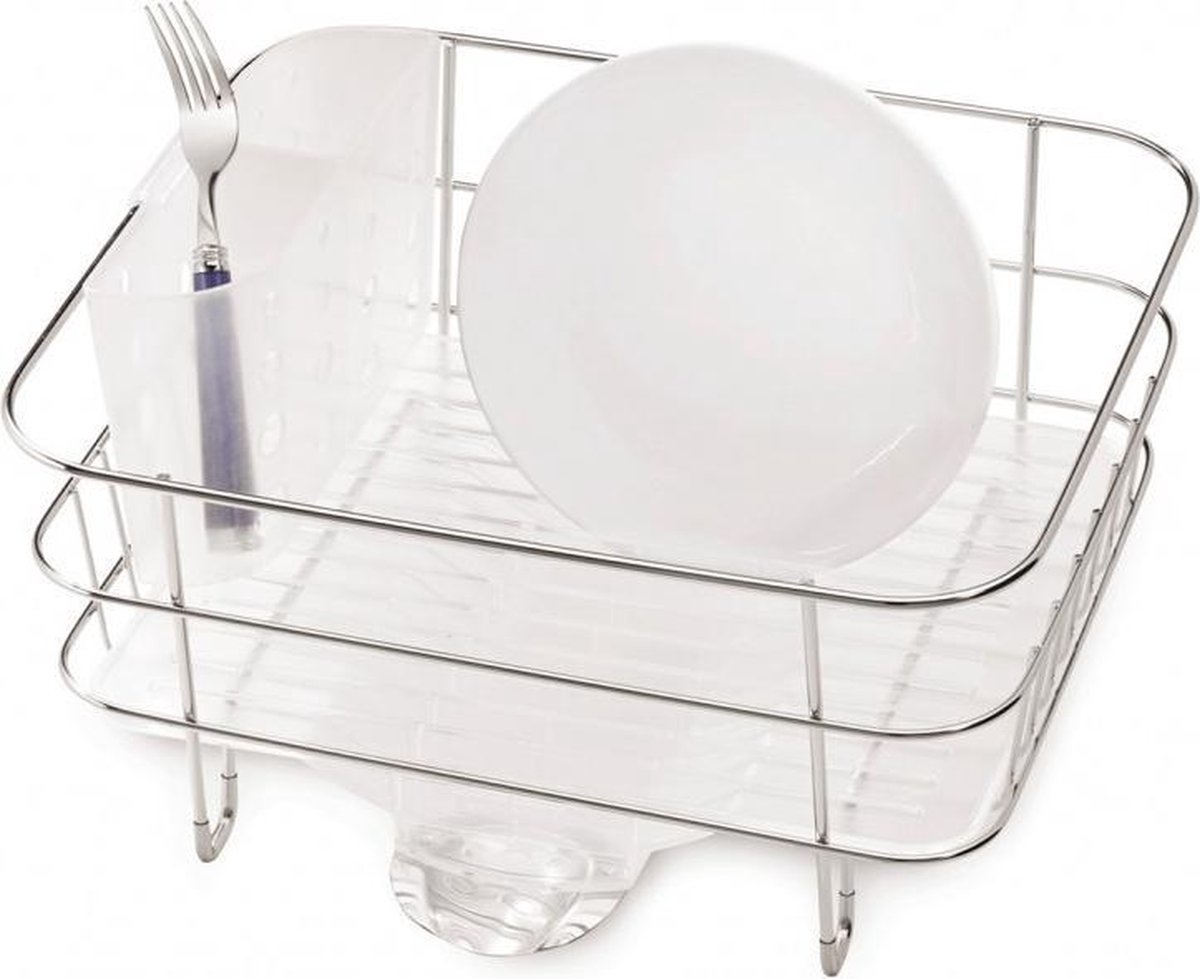 Afwassen is een hele klus, dus als je het afdrogen kunt vergeten is dat natuurlijk heerlijk! Met dit afwasrek van Simplehuman droogt het servies vanzelf, blijft het aanrecht droog en wordt het water direct in de gootsteen afgegoten. Een klein model met veel ruimte! Over Simplehuman De hoofdgedachte van Simplehuman is om het dagelijks leven in huis makkelijker te maken. Daarom noemt deze fabrikant zijn producten “gereedschappen voor efficiënt wonen�. De producten van Simplehuman zijn zoals de naam het zelfs zegt eenvoudig, maar ook functioneel en van goede kwaliteit. Simplehuman biedt een breed assortiment sensorprullenbakken, prullenbakken die open gaan door je hand lichtjes over de deksel te bewegen. Zo hoef je de prullenbak nooit meer aan te raken! Daarnaast biedt Simplehuman verschillende afvalzakken en keukenorganisers aan.