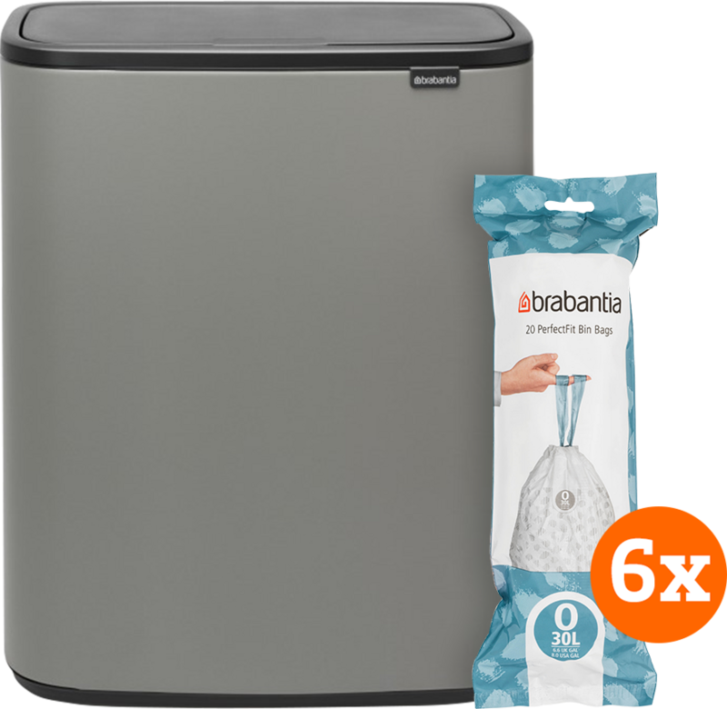 Brabantia Bo Touch Bin 2 x 30 Liter Mineral Concrete Grey + Vuilniszakken