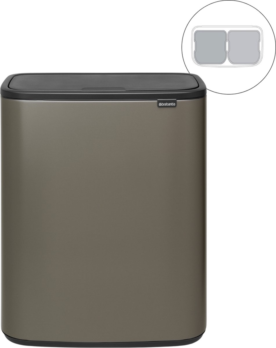 Op zoek naar een mooie Vuilnisbak voor afval scheiden? Deze XXL Brabantia Bo Touch Bin prullenbak 2 x 30 liter met 2 vakken heeft een prachtig ontwerp en alles wat je nodig hebt om thuis makkelijk afval te scheiden. Zoals twee ruime en uitneembare binnenemmers voor 2 soorten afval. Het deksel opent bij de lichtste aanraking, de prullenbak past perfect tegen een muur en is gemakkelijk te verplaatsen door de geïntegreerde handgrepen. Groots!