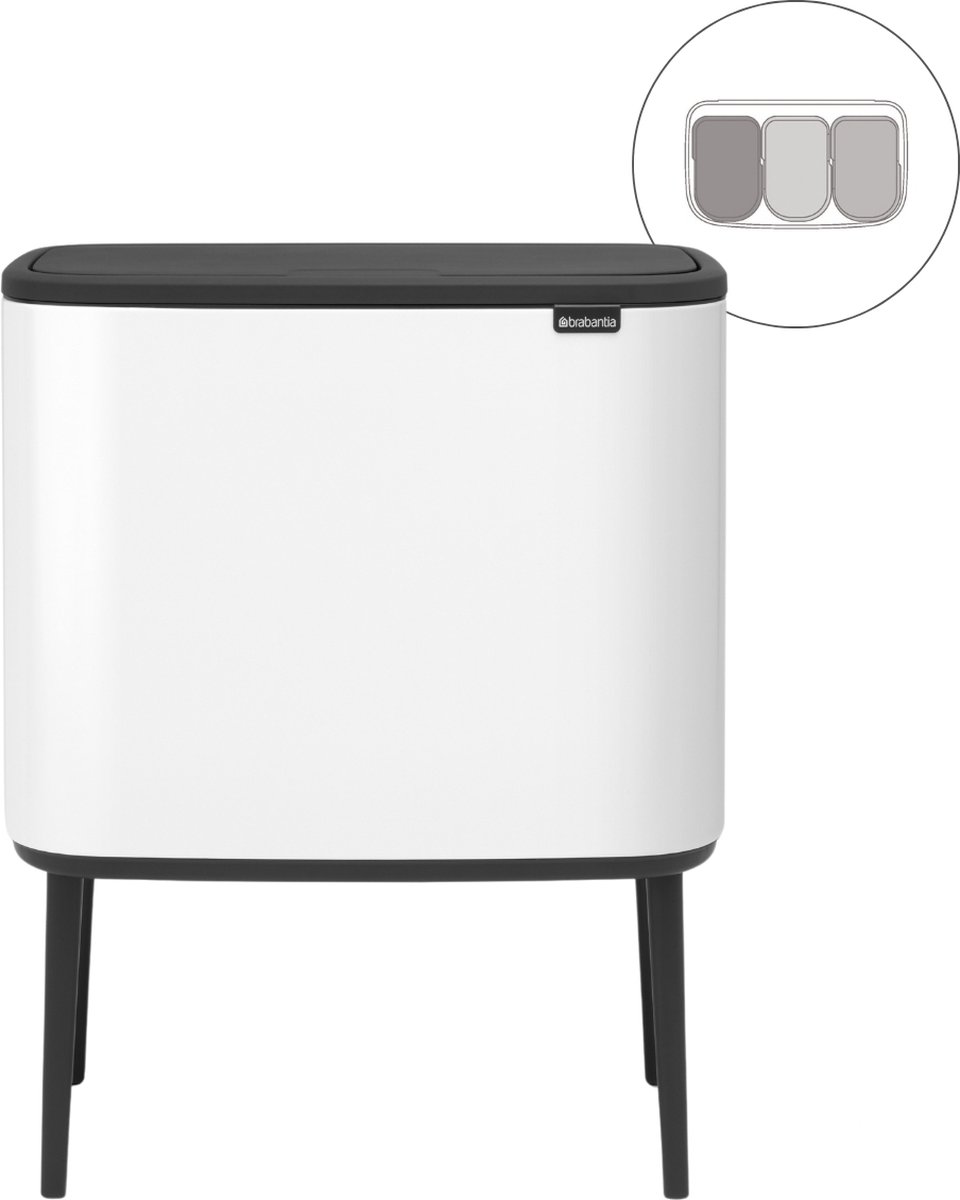 Brabantia Bo Touch Bin Prullenbak – 3 x 11 l – White Ideaal voor afval scheiden – drie binnenemmers.