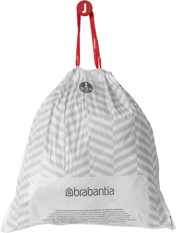 De Brabantia Vuilniszakken Code J – 20-25 Liter (120 stuks) zijn geschikt voor Brabantia prullenbakken met vuilniszak code J. Dit zijn de prullenbakken met een inhoud van 20 tot 25 liter. Dankzij de trekband haal je de vuilniszak gemakkelijk uit de prullenbak en knoop je ‘m dicht. Je ontvangt 6 rollen die per 20 vuilniszakken zijn verpakt. Handig, want zo ga je wel even vooruit.