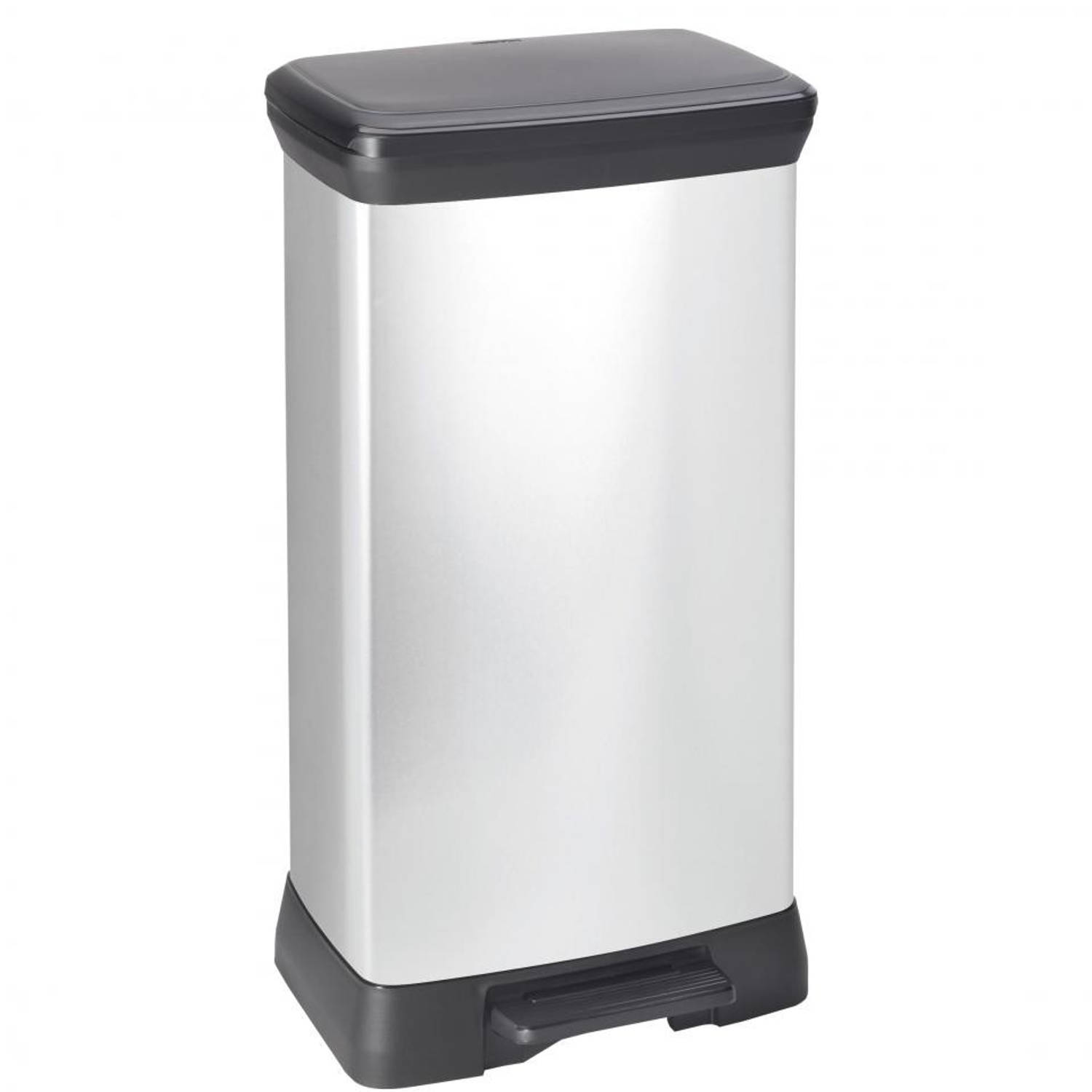 In deze zilverkleurige Curver afvalbak Decobin met een inhoud van 50 l kun je heel wat afval kwijt. Deze stevige afvalbak, gemaakt van kunststof, heeft een lengte van 39 cm, een breedte van 29 cm en een hoogte van 73 cm.