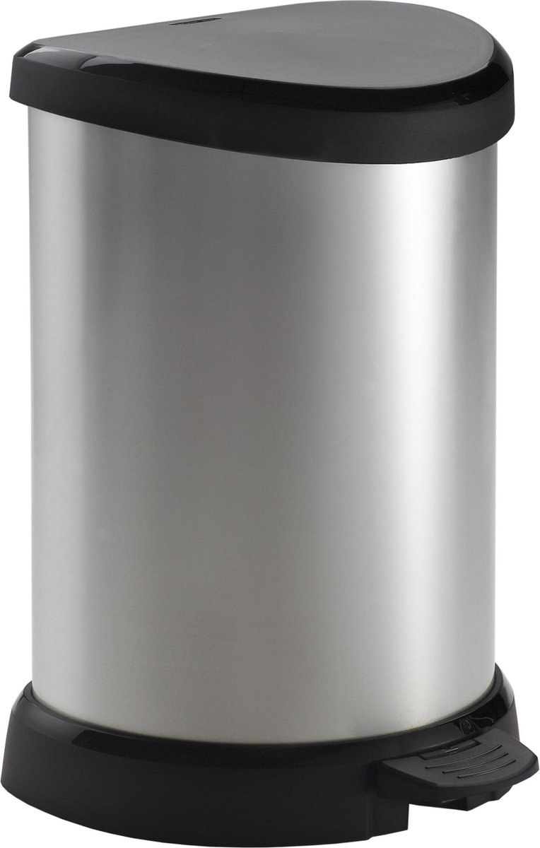 Deze Curver Deco bin heeft een metaaluitstraling maar heeft de voordelen van kunststof. De vuilnisbak is licht van gewicht, roest niet, deukt niet en vingerafdrukken zijn niet zichtbaar. Andere bijkomende voordelen zijn; een pedaal. De deco bin is ook voorzien van een vuilniszakhouder. Gemakkelijk te gebruiken voor het kleinere afval.