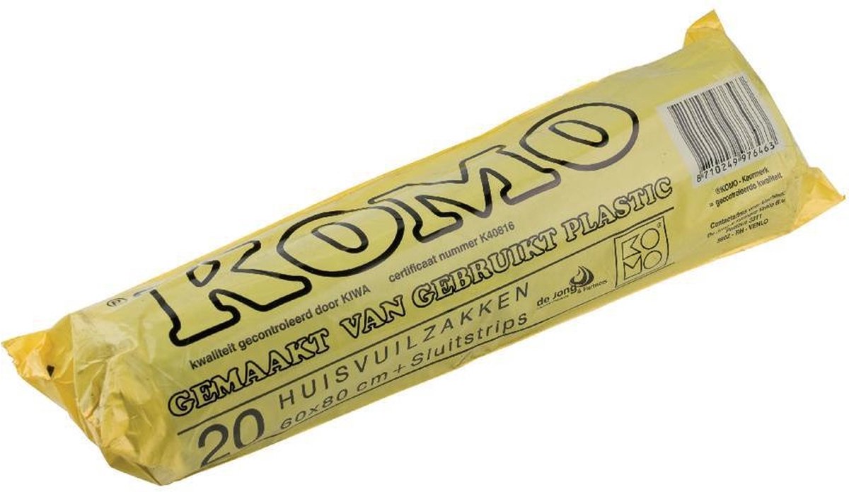Grijze huisvuilzakken van 60×80 cm en 50 my dik. Geschikt voor zwaardere toepassingen zoals horeca, catering, bouw en industrie. Huisvuilzakken, 60×80 cm, 50 my, grijs Inhoud: 60 liter Aantal zakken per rol: 20 stuks Breedte 60 cm Lengte 80 cm Dikte 50 my Kleur grijs, Komo Deze afvalzakken kom je in bijna ieder huis of bedrijf tegen. Dat is niet gek: KOMO staat garant voor kwaliteit. Je kunt ze gebruiken voor zowel lichte als zware toepassingen in o.a. horeca, bouw of industrie. Ook mooi: na gebruik worden ze gerecycled!