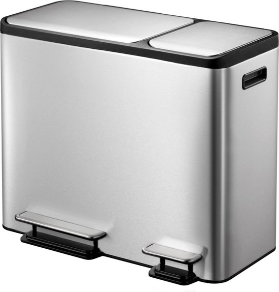 Deze pedaalemmer is niet zomaar een afvalbak. Hij is speciaal ontworpen met het oog op efficiëntie en praktisch gebruik. Met een inhoud van maar liefst 30 liter voor regulier afval en 15 liter voor recycling, biedt hij voldoende ruimte om al je afval gescheiden te houden. Dankzij de handige pedaalbediening hoef je nooit meer je handen vuil te maken bij het openen van de afvalbak.