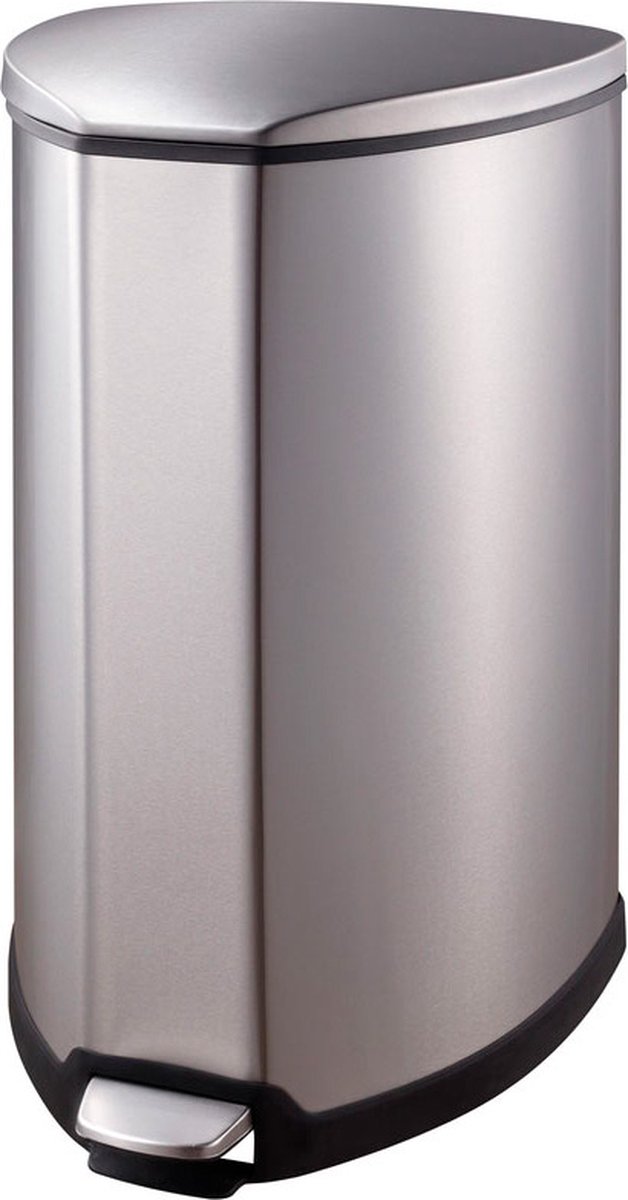Opvallende, driehoekige pedaalemmer voorzien van kunststof binnenemmer en gedempt sluitend deksel.