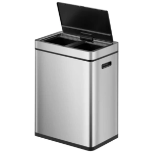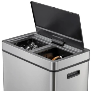 Met een totale capaciteit van 60 liter, verdeeld over twee compartimenten van 30 liter elk, biedt de EKO Mirage Plus Sensor Recycler voldoende ruimte voor al je afval. Of het nu gaat om plastic, papier, glas of organisch afval, deze prullenbak kan het allemaal aan. Dankzij de handige sensor hoef je alleen maar je hand boven de prullenbak te houden en hij opent automatisch. Geen gedoe meer met het zoeken naar het pedaal of het aanraken van de deksel met vieze handen. Bovendien sluit de deksel ook automatisch na gebruik, waardoor geurtjes en bacteriën geen kans krijgen om te ontsnappen.