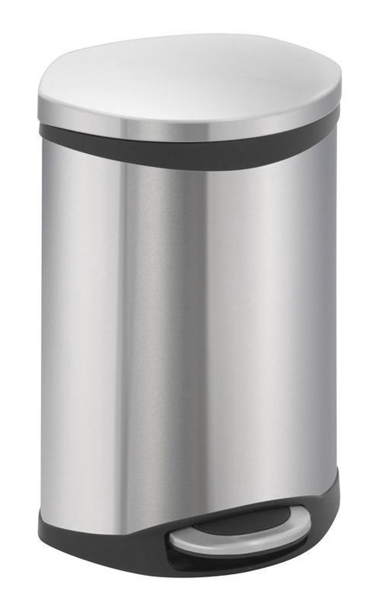 Opvallende schelpvormige pedaalemmer voorzien van gedempt deksel en kunststof binnenemmer. Fingerprint Proof.