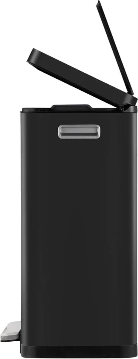 Stijlvolle rechthoekige pedaalemmer met extra breed pedaal, kunststof binnenemmer, gedempt sluitend deksel en stay-open functie. De pedaalemmer van geborsteld RVS is voorzien van fingerprint proof coating en nano zilver anti-bacteriële coating. De siliconen afdichtingsring zorgt voor het effectief vasthouden van nare luchtjes in de afvalbak. Tevens zit er een ingebouwd geurfilter in het deksel. De opklapbare rand houdt de bak open voor het makkelijk verwisselen van de afvalzak en/of het uitnemen van de binnenemmer.