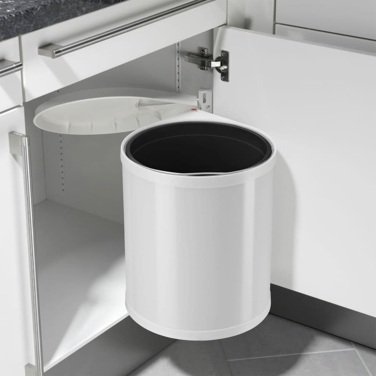 Deze afvalbak is ideaal voor elke inbouw keuken. Het deksel-liftsysteem tilt het deksel naar één kant op zodra u de kastdeur opent. Dit zorgt voor eenvoudig vullen en verwijderen van de binnenbak. De afvalbak is eenvoudig te monteren. U kunt zelf kiezen of het aan de rechter- of linkerdeur gaat. De Compact-Box M kan maximaal 15 liter bevatten en kan worden gebruikt met carrouselunits van meer dan 40 cm breed.