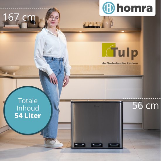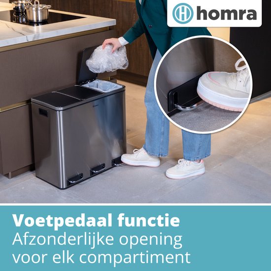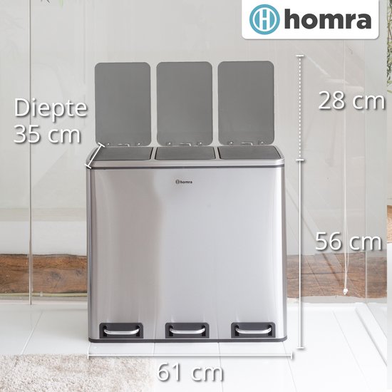 Homra Sparq Pedaalemmer 54 Liter – RVS Prullenbak 3 vakken