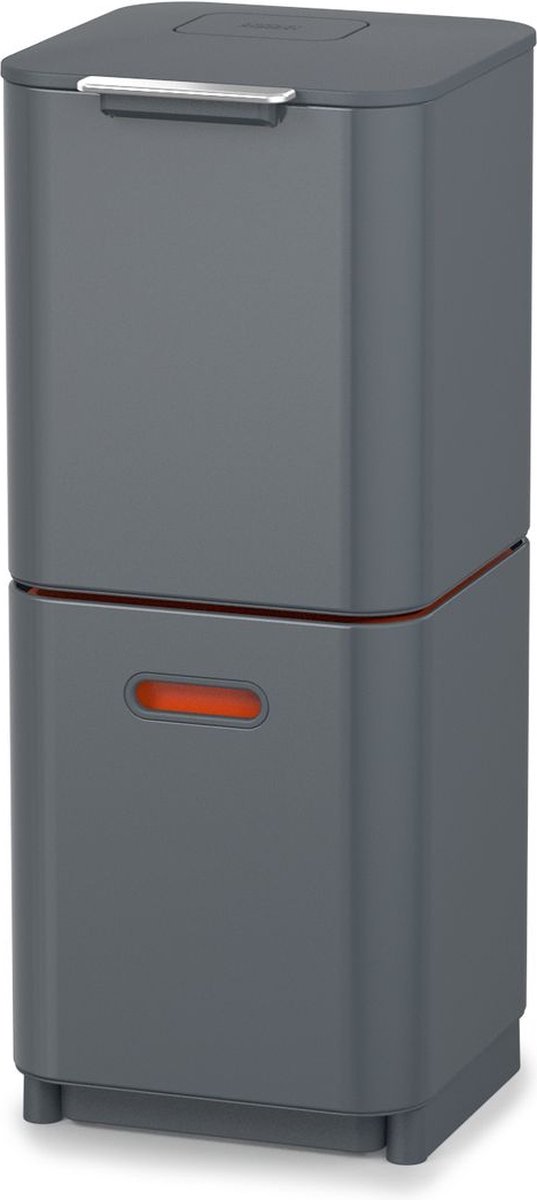 De Intelligent Waste Totem 2.0 Compact afvalemmer van Joseph Joseph maakt het scheiden van afval nog makkelijker. De twee gelijke compartimenten hebben een totale inhoud van 40 liter, ideaal voor 2 tot 3 personen. De compartimenten zijn verticaal gerangschikt, in plaats van naast elkaar. Dit spaart ruimte en betekent dat je ze veel eenvoudiger kunt vullen en legen, zonder de noodzaak om het deksel te verwijderen. Deze award-winnende prullenbak wordt geleverd met een uitneembaar GFT-bakje van 3 liter. En dankzij de ingebouwde geurfilter in het deksel komen er geen nare luchtjes vrij. De afvalemmer is met een simpele aanraking te openen en is zo bewerkt dat hier geen vingerafdrukken op blijven zitten na gebruik.