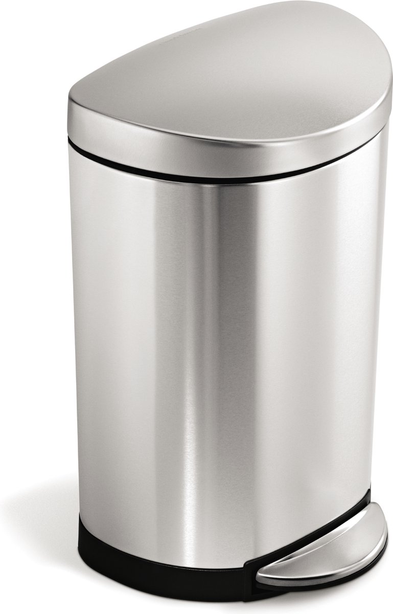 Deze kleine, kwalitatieve afvalemmer van Simplehuman heeft een praktische halfronde vorm. Zo neemt de afvalemmer niet veel ruimte in beslag en is deze perfect tegen de wand te plaatsen. De pedaalemmer heeft een inhoud van 10 liter, ideaal voor gebruik in de badkamer, op kantoor of in een kleine keuken. Het roestvrijstalen materiaal is zo bewerkt dat hier geen vingerafdrukken op blijven zitten na gebruik en het deksel garandeert een soepele en geruisloze sluiting. De binnenemmer is uitneembaar, waardoor het afval eenvoudig in een container gegooid kan worden.