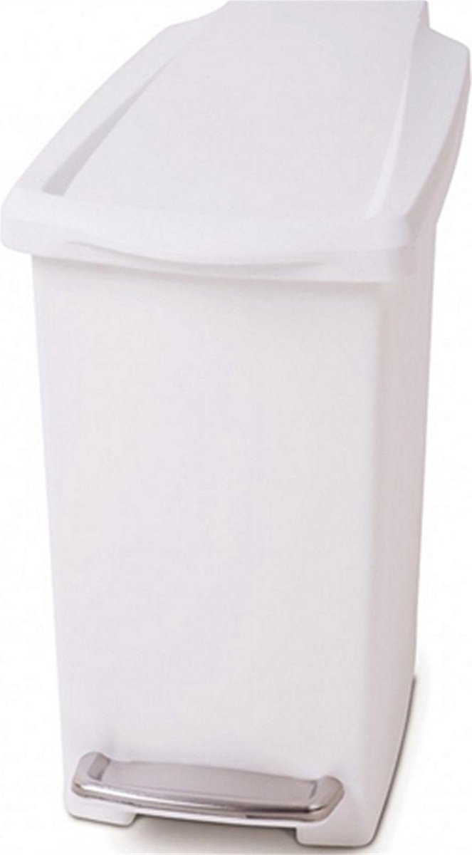 Kunststof afvalemmer Slim van Simplehuman met een inhoud van 10 liter. De prullenbak is compact gemaakt van polypropylene kunststof. De afvalemmer is bedienbaar met een stalen pedaal. Dankzij de smalle vorm past de afvalemmer in de meest nauwe hoekjes van het huis, bijvoorbeeld in de badkamer. De afvalemmer heeft een binnenemmer waardoor de afvalzak niet zichtbaar of rommelig over de afvalemmer heen hangt.